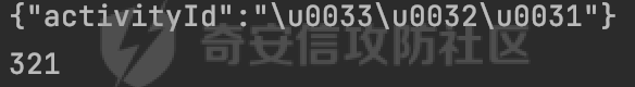 String body = "{\"activityId\":\"\\u0033\\u0032\\u0031\"}";