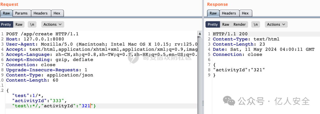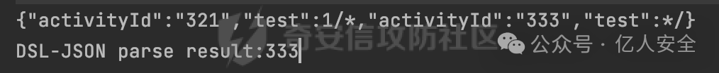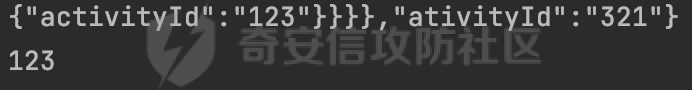 原因也很简单,因为在计算WeakHash后,类似上面请求的json内容,test并不是是指定类型User的属性,并不会参与解析,经过,分割后,注释内容里的activityId被当成正常JSON内容参与了解析。