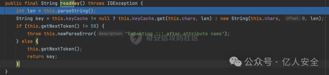首先会调用com.dslplatform.json.JsonReader#readKey方法对键进行解析: