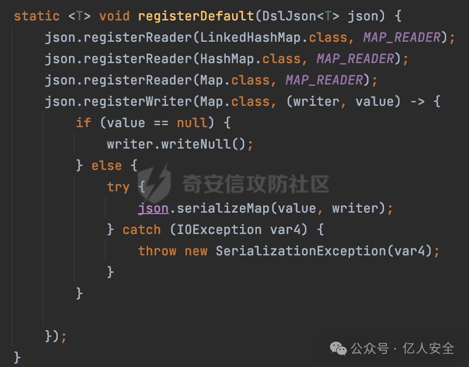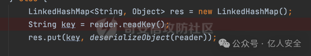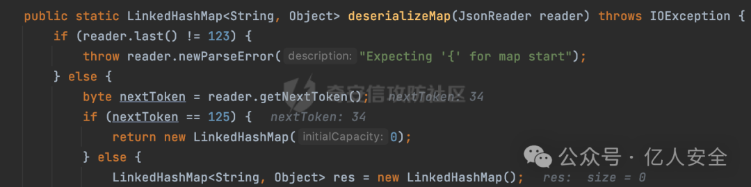 在前面的分析过程中,DSL-JSON在调用deserializeMap处理时,会创建一个新的 LinkedHashMap 对象 res对JSON内容的解析结果进行存储: