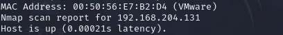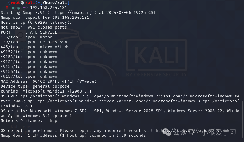 命令2:nmap -O 192.168.204.131 检测主机运行的一些信息