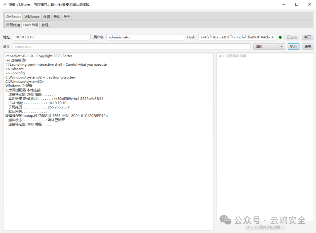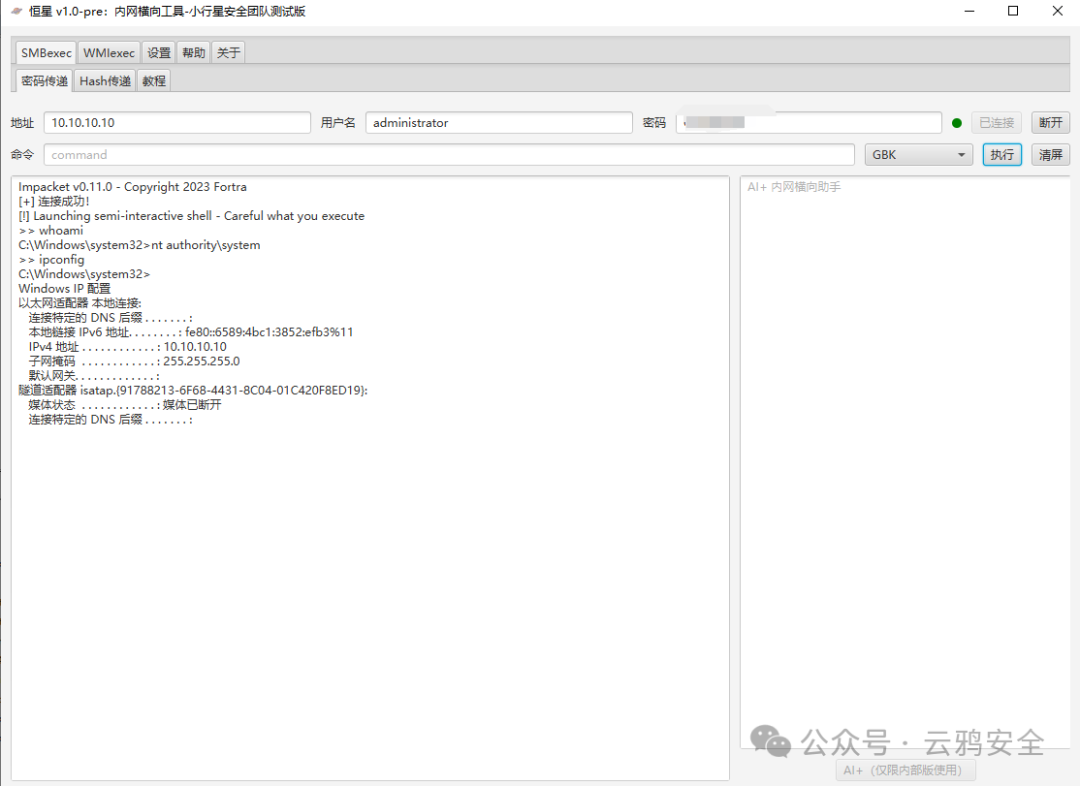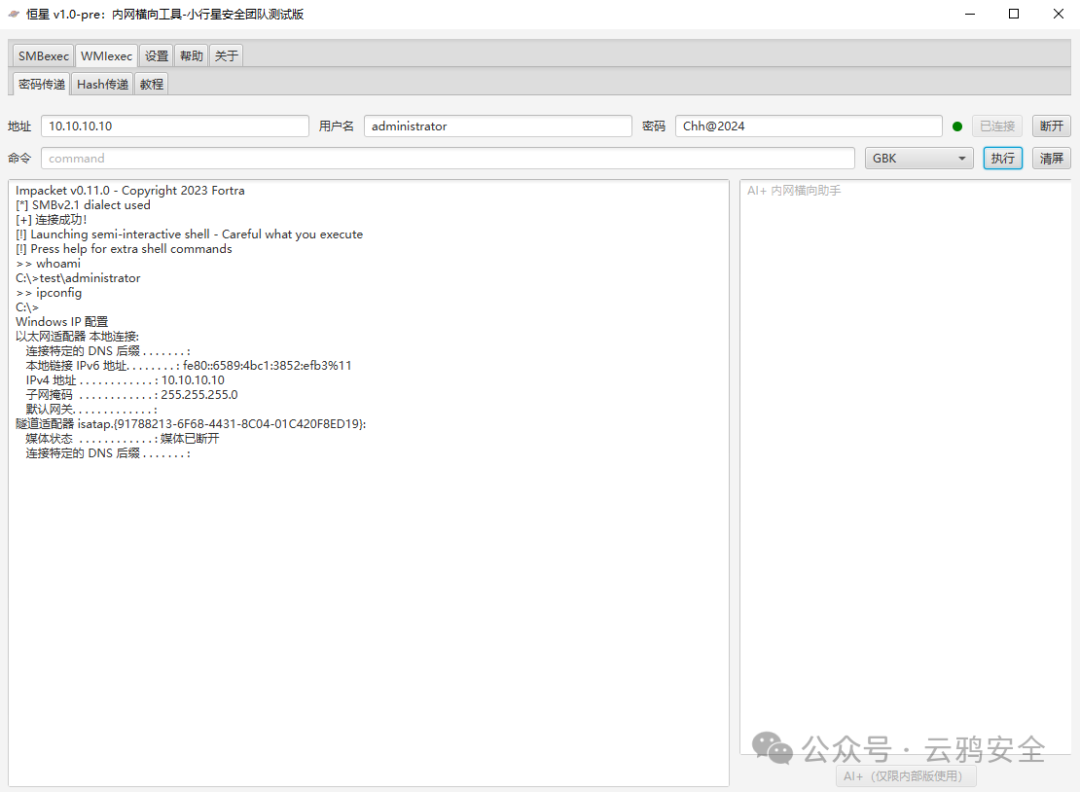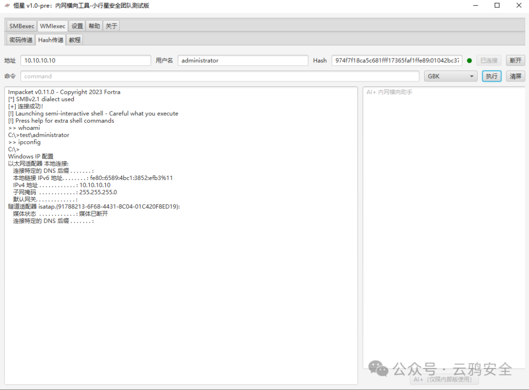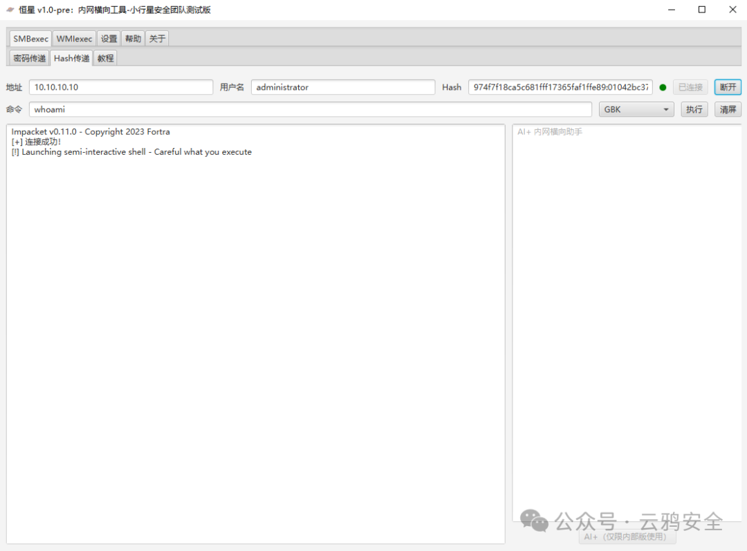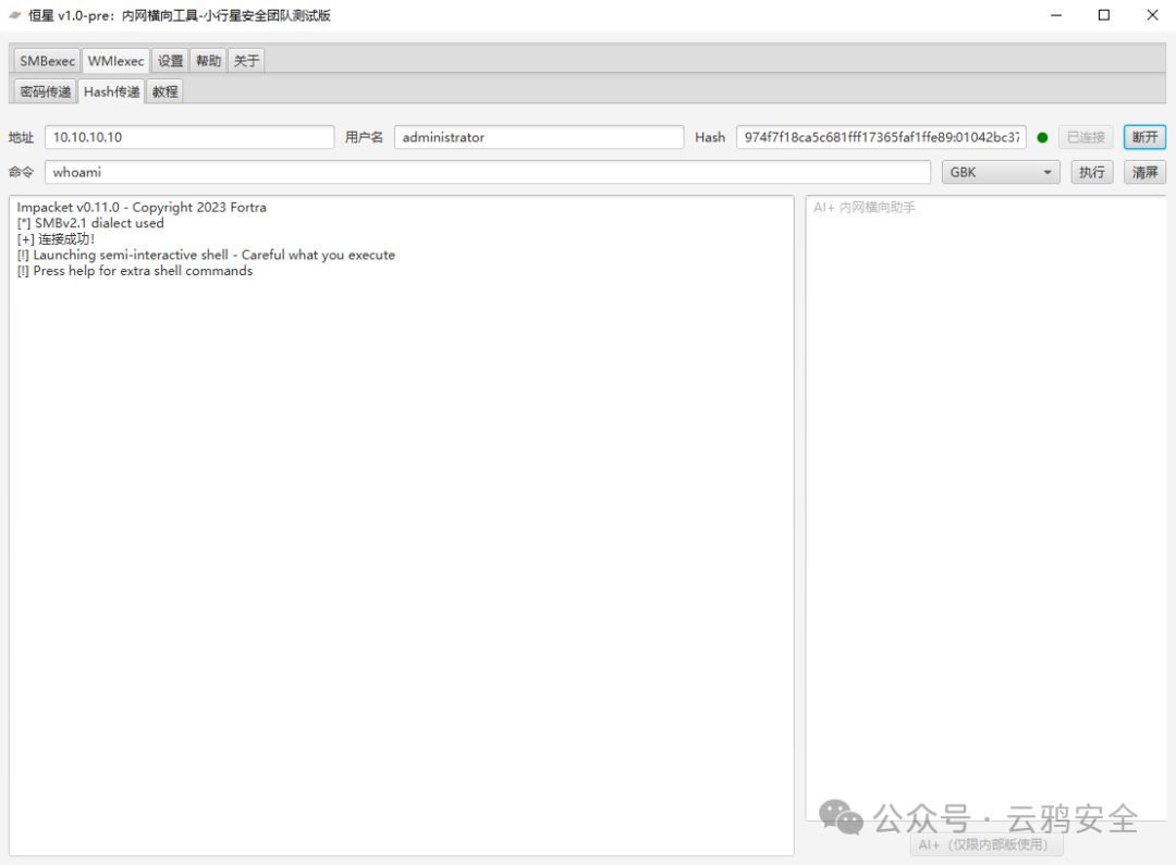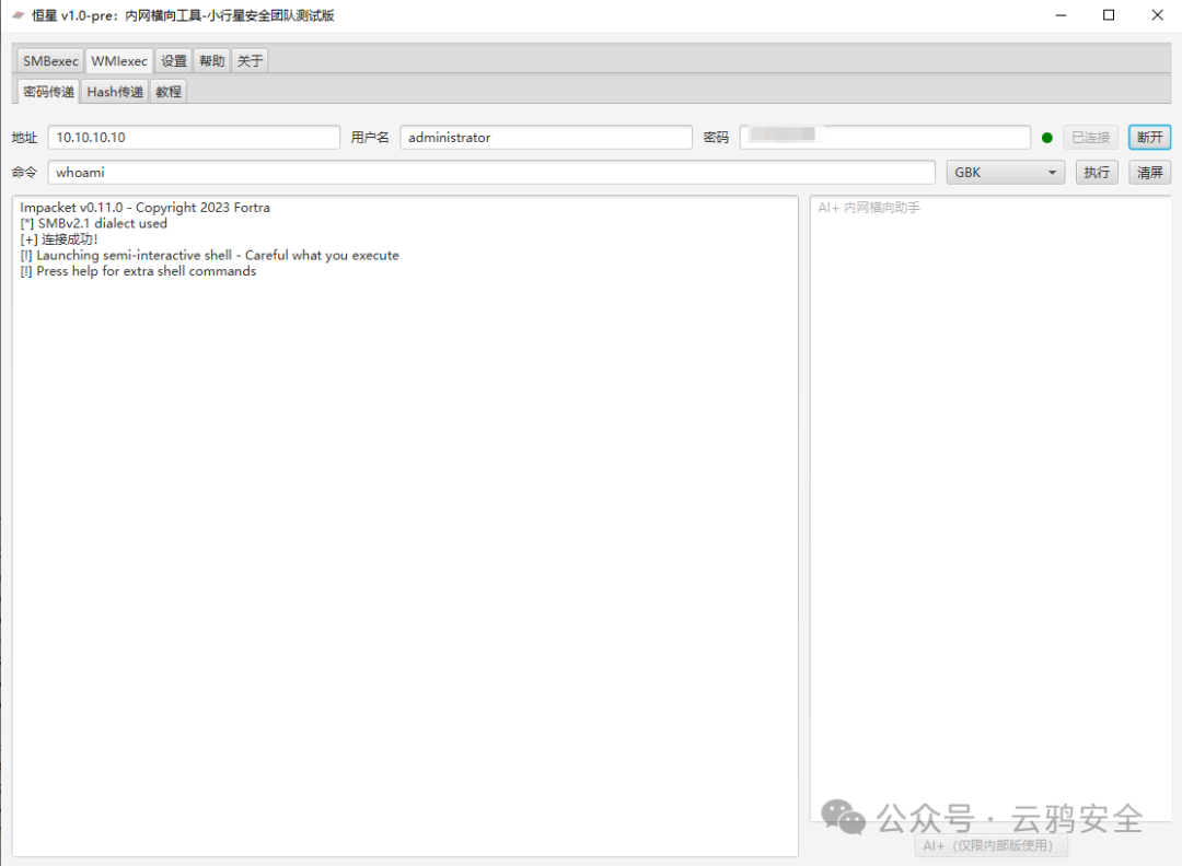 【工具说明】 一款专属于"脚本小子"的内网横向GUI工具,当前内测版集成了SMbexec和WMIexec模块,可在GUI页面中直接调用。