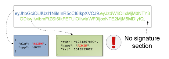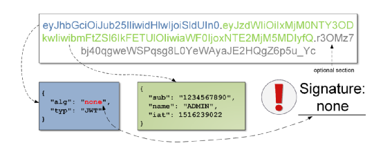 攻击者可以获得一个JWT(带有签名),对其进行更改(例如,添加新权限等),然后将其放在标头{" alg":"none"}中。然后将整个内容发送到API(带或不带签名)。这时候,服务器应该接受这样的令牌吗?从理论上讲是可以的,但是它将破坏JWT签名的整个思想。然而,这样的情况真的发生了。