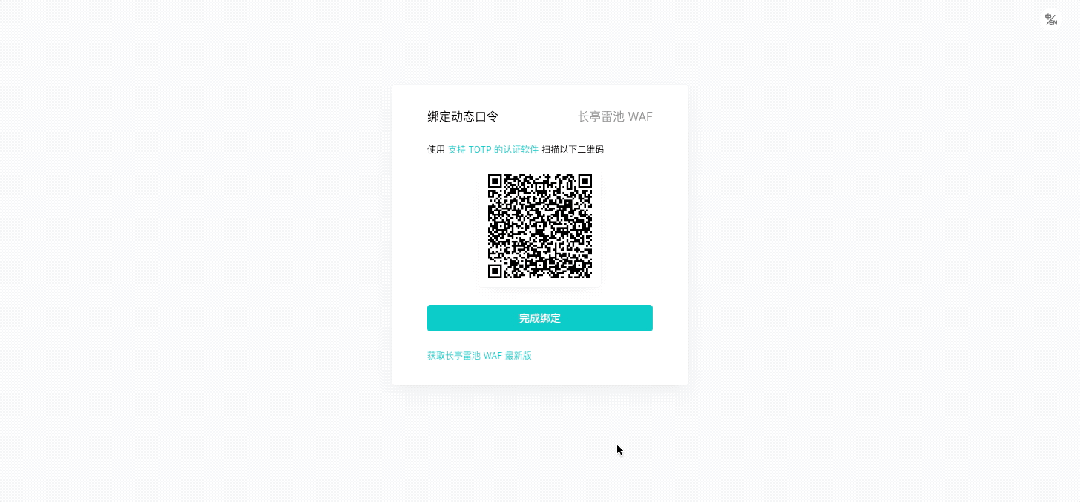 浏览器打开后台管理页面 https://:9443。根据界面提示,使用 支持 TOTP 的认证软件 扫描二维码,然后输入动态口令登录:
