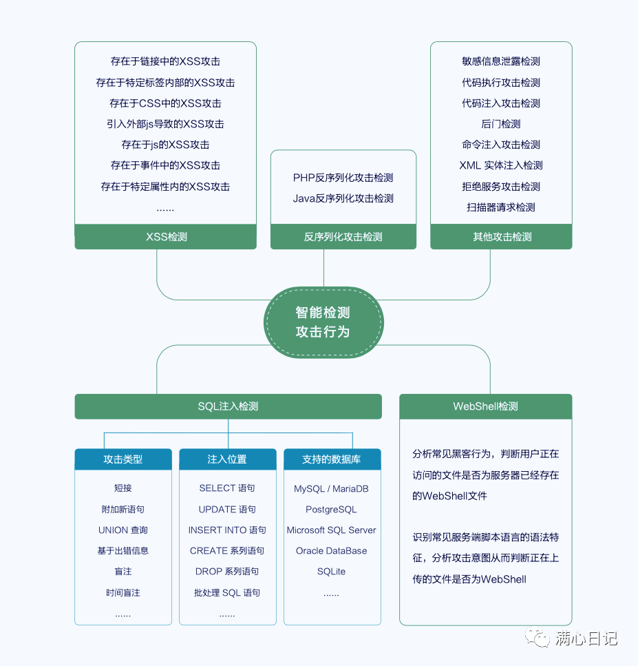 具有覆盖OWASP安全风险的智能检测引擎,不依靠传统规则匹配模型,通过智能识别和分析HTTP/HTTPS,发现和阻断安全威胁。