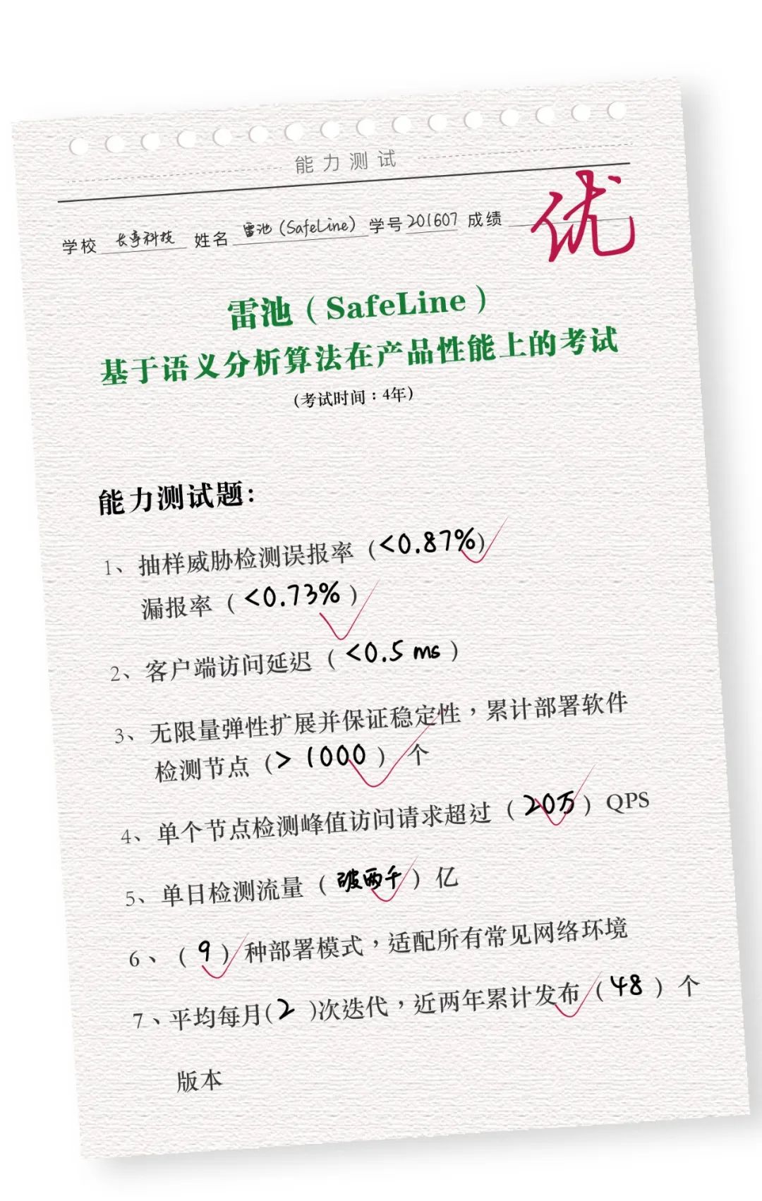 我们来看一组雷池(SafeLine)基于智能语义分析算法在产品性能上交出的成绩单: