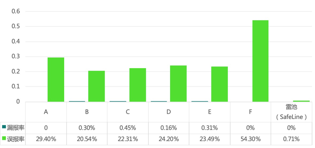 当年我们自己打了一个测试包,把雷池(SafeLine)检测引擎的能力和国内外主流WAF产品进行测试比较,结果如图。