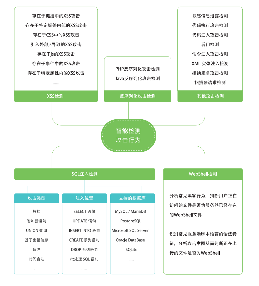 雷池(SafeLine)具备良好的兼容性,在网络中可无缝对接Tomcat、Weblogic、Jboss等主流Web中间件,无需自学习,即可对Web应用进行有效防御。