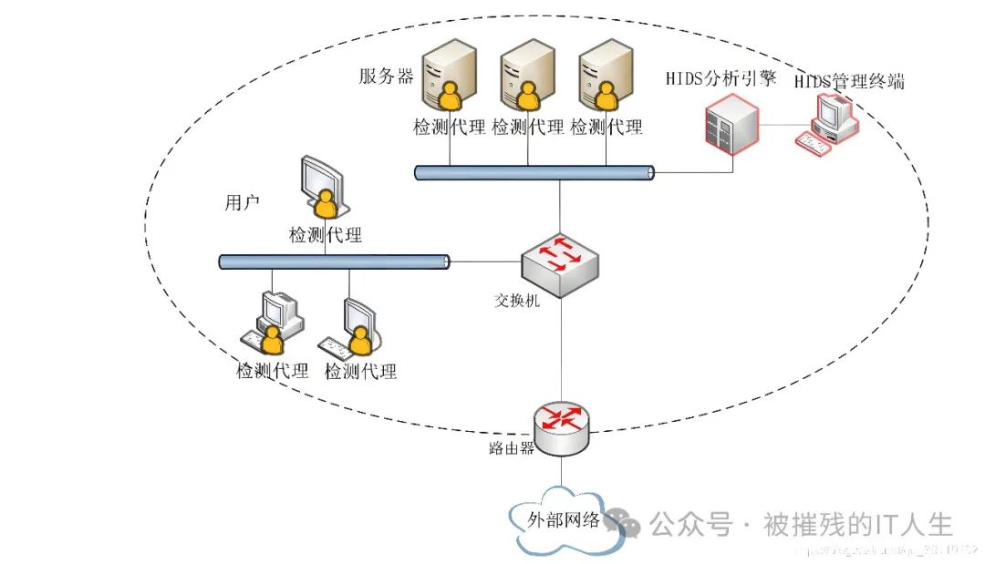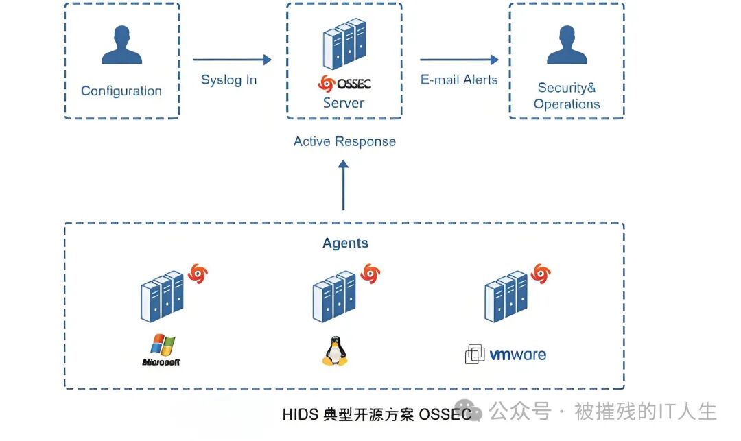 与杀毒软件相比,它是用于识别黑客的各类行为的,这与杀毒软件基于库识别病毒文件有着本质区别。所以很多时候杀毒软件无法识别时,HIDS可以识别。开源产品有OSSEC和WAZUH。