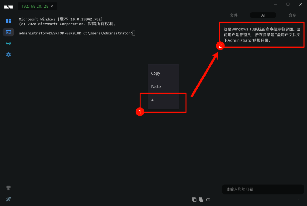 接下来是AI相关的功能,在界面上按右键可以看到一个调用AI的按钮,点击之后他就会解析屏幕上的指令,来告诉你当前发生了什么。