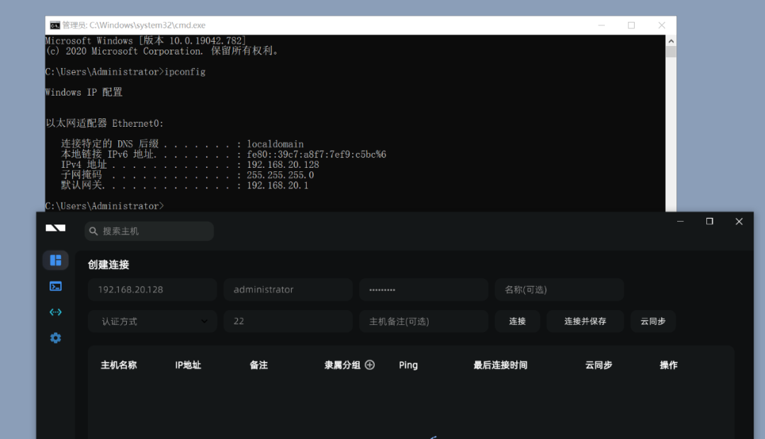 填写信息之后可以选择保存和云同步,我们这里先拿本地虚拟机里的SSH服务端环境试一下。