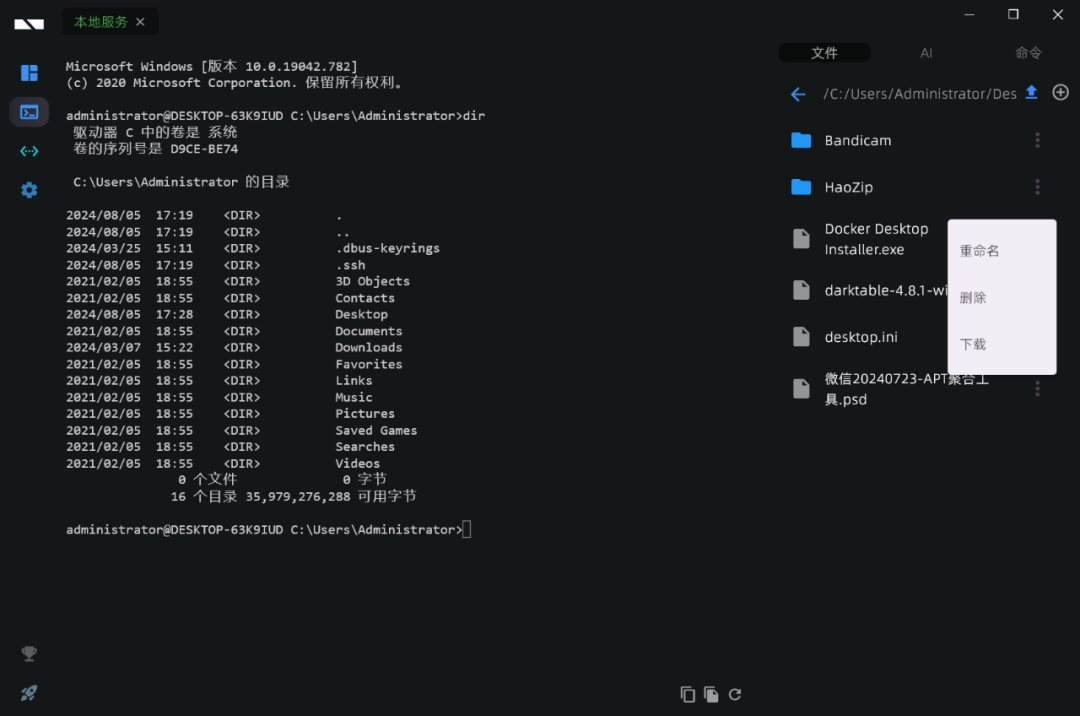 说回使用,正常连接上之后,旁边也会显示对应路径的文件,可以进行重命名与删除下载等操作。