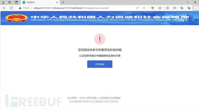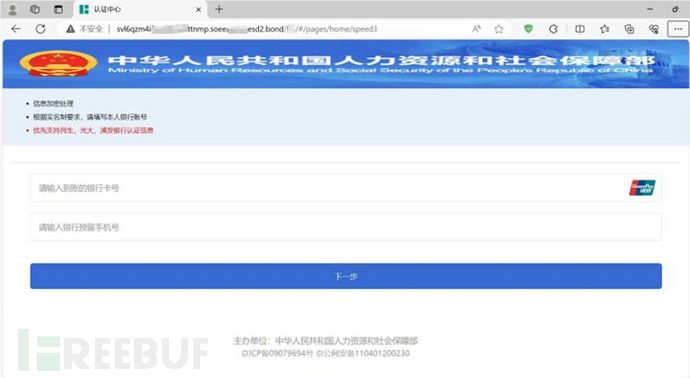 跳转到诱导页面,增强真实性,引导受害者申报劳动补贴,随后让受害者输入银行卡信息。