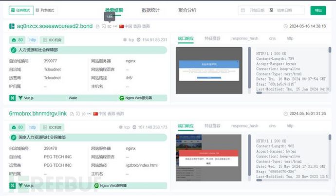 根据已知信息,我们获取了域名“soeeawouresd2.bond”及解析的ip地址“154.91.83.231”,将这些线索拿到拓线平台进行查询,可以获取到的有效信息如下: