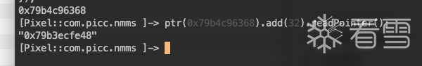 ptr(0x79b4c96368).add(32).readPointer(); //这里我使用的安卓8.0系统 32是4个指针乘8字节