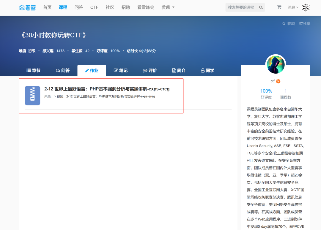 对于零基础的同学来说,入门CTF可能会感到困惑,但不用担心!我们联合顶尖讲师团队打造了课程《30小时教你入门CTF》,通过30小时的学习,你将基本掌握网络安全核心领域及CTF竞赛五大方向的基础知识,并具备一定的实战攻防能力。