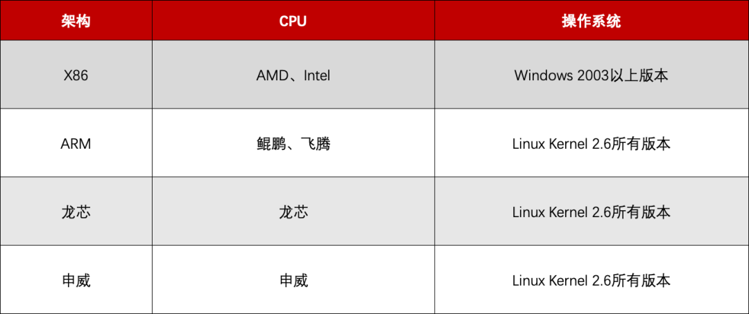 支持飞腾、鲲鹏、申威、龙芯等国产化平台;