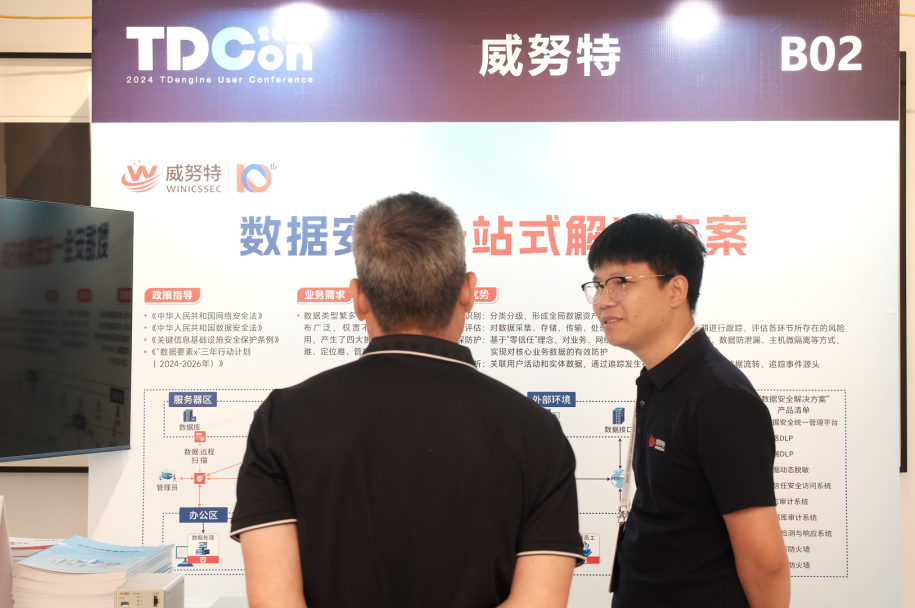 7月26日,由涛思数据主办的「2024 TDengine 用户大会」在北京嘉瑞文化中心成功举办。威努特作为唯一受邀的网络安全厂商,携数据安全一站式解决方案与多款明星产品精彩亮相大会。