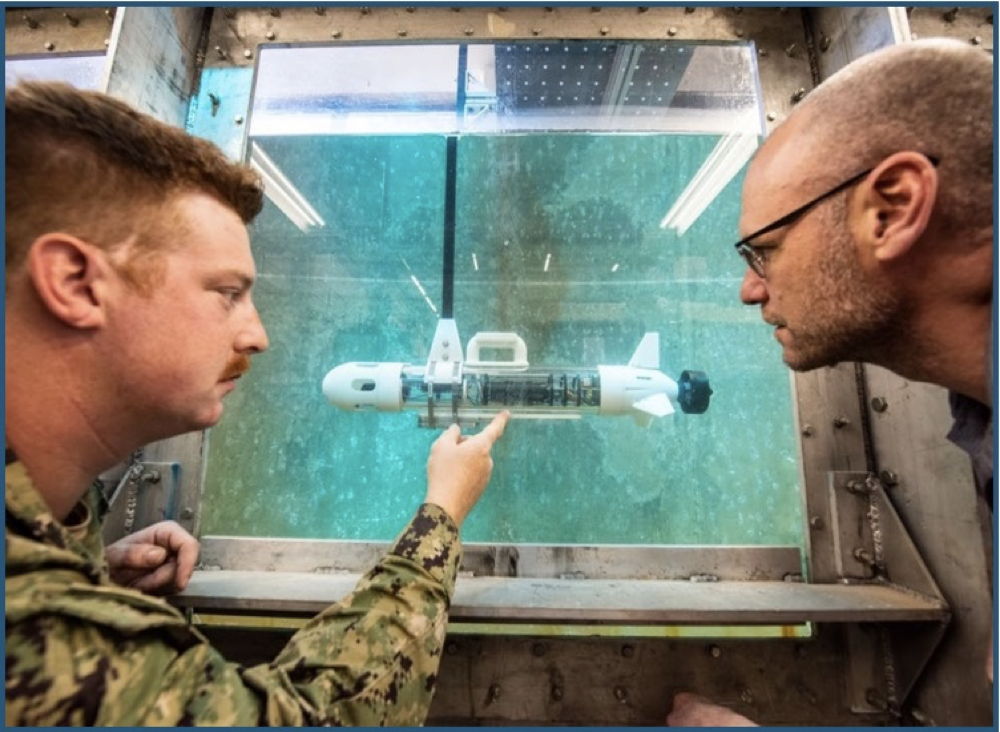 图4 美国海军中尉James Dubyoski和海军研究生院(NPS)助理教授Tony Pollman与佛罗里达州巴拿马市海军水面作战中心合作,对可重复使用远征作战水下航行器(DREW UV)进行测试。NPS的海军创新中心将与DIB、技术部门和学术界合作,进行应用研究、分析、原型设计和实验,应对复杂的挑战。