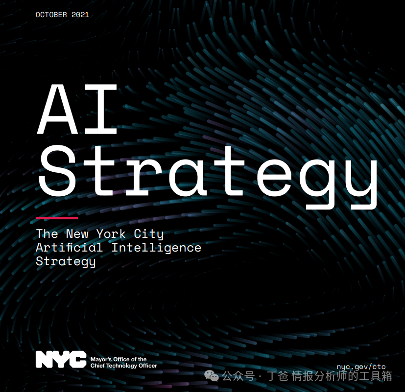 该文本是纽约市首席技术官办公室(NYC CTO)发布的《纽约市人工智能战略》(NYC AI Strategy),首次发布于2021年10月13日。策略文件版本为1.9.1014-12,在线版本可在nyc.gov/cto获取。