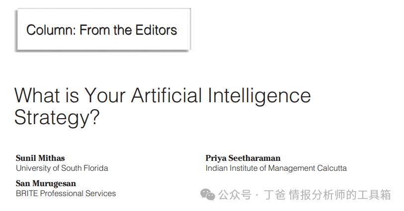 本文讨论了人工智能(AI)战略的重要性,以及如何为企业在不同行业中应用AI提供建议。作者包括来自南佛罗里达大学、印度管理学院卡拉蒂和专业服务公司的专家。