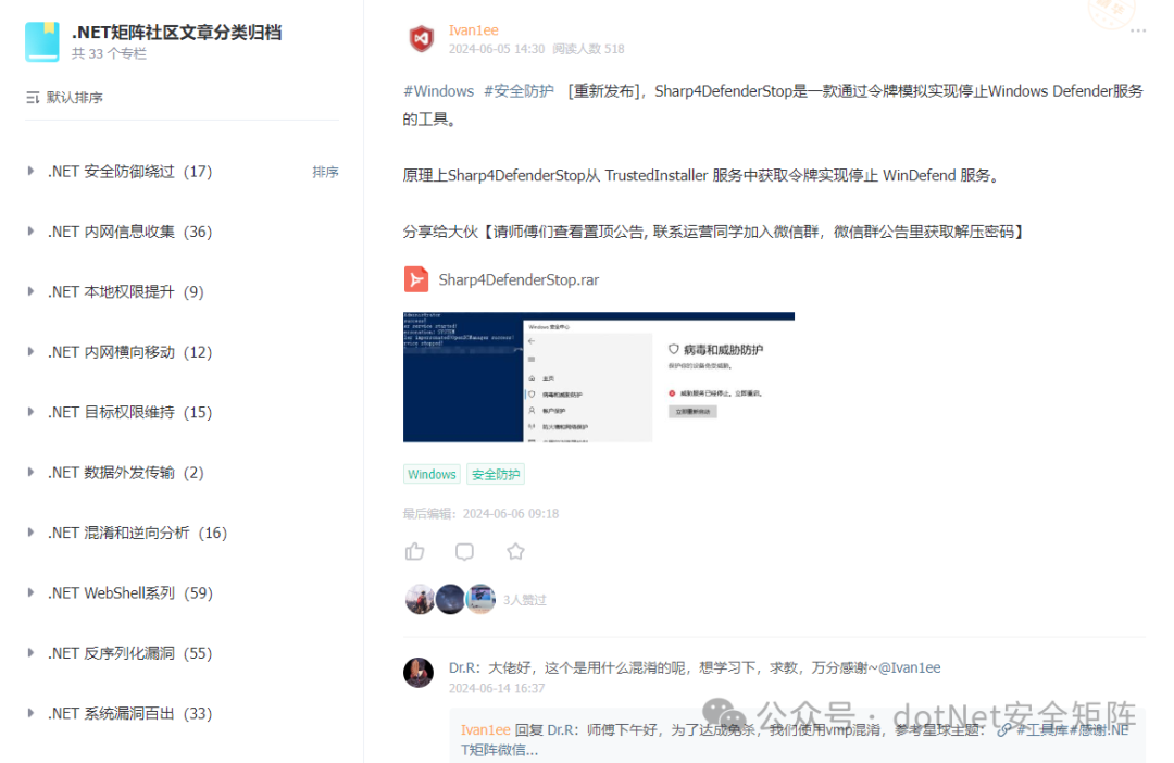 星球汇聚了各行业安全攻防技术大咖,并且每日分享.NET安全技术干货以及交流解答各类技术等问题,社区中发布很多高质量的.NET安全资源,可以说市面上很少见,都是干货。