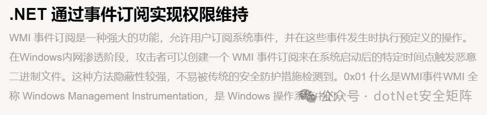WMI 事件订阅是一种强大的功能,允许用户订阅系统事件,并在这些事件发生时执行预定义的操作......