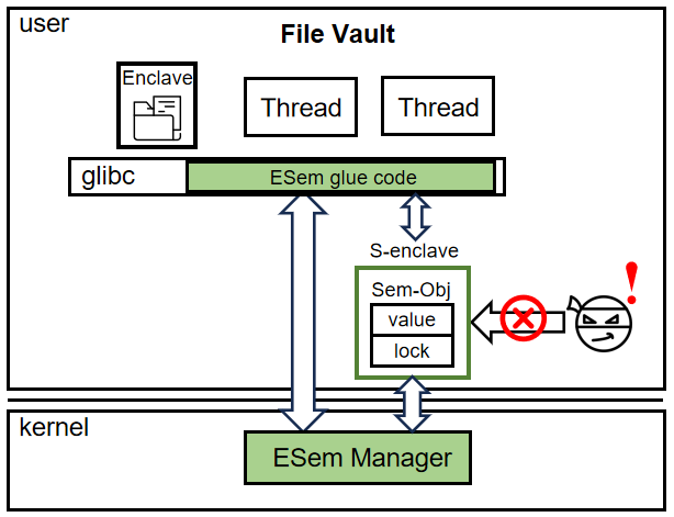 ESem 在 File Vault 中引入 s-enclave,将进程同步服务放入其中,从而防御上述攻击。