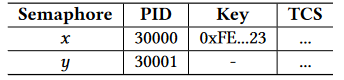 ESem 所面对的主要挑战是 enclave 提供的进程内隔离和希望的进程间同步相冲突。即进程同步涉及多个进程的管理,如果希望使用 enclave 来保护 semaphore,则需要 enclave 能够同时被多个进程访问,然而 enclave 只能为单个进程服务。