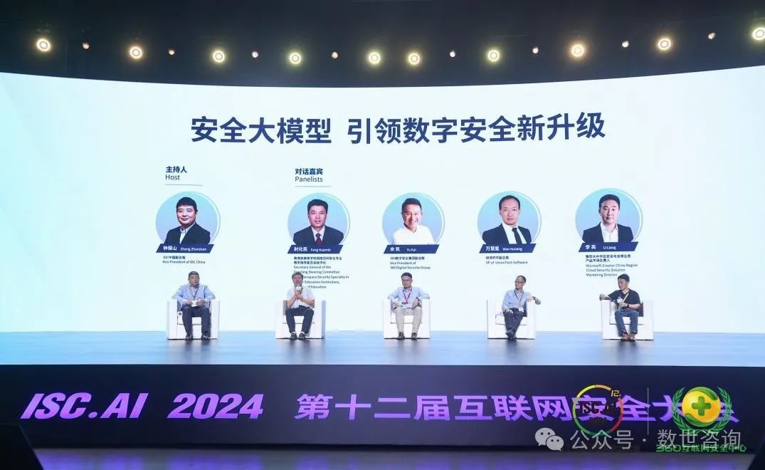 随后,在由IDC中国副总裁钟振山主持的“安全大模型引领数字安全新升级”圆桌对话上,教育部高等学校网络空间安全专业教学指导委员会秘书长封化民,360数字安全集团副总裁余凯,统信软件副总裁万慧星,微软大中华区安全与合规业务产品市场负责人李亮,围绕大模型技术对于安全行业的影响、大模型在安全领域应用的主要优势和障碍以及小模型的应用价值等话题,发表了各自观点。