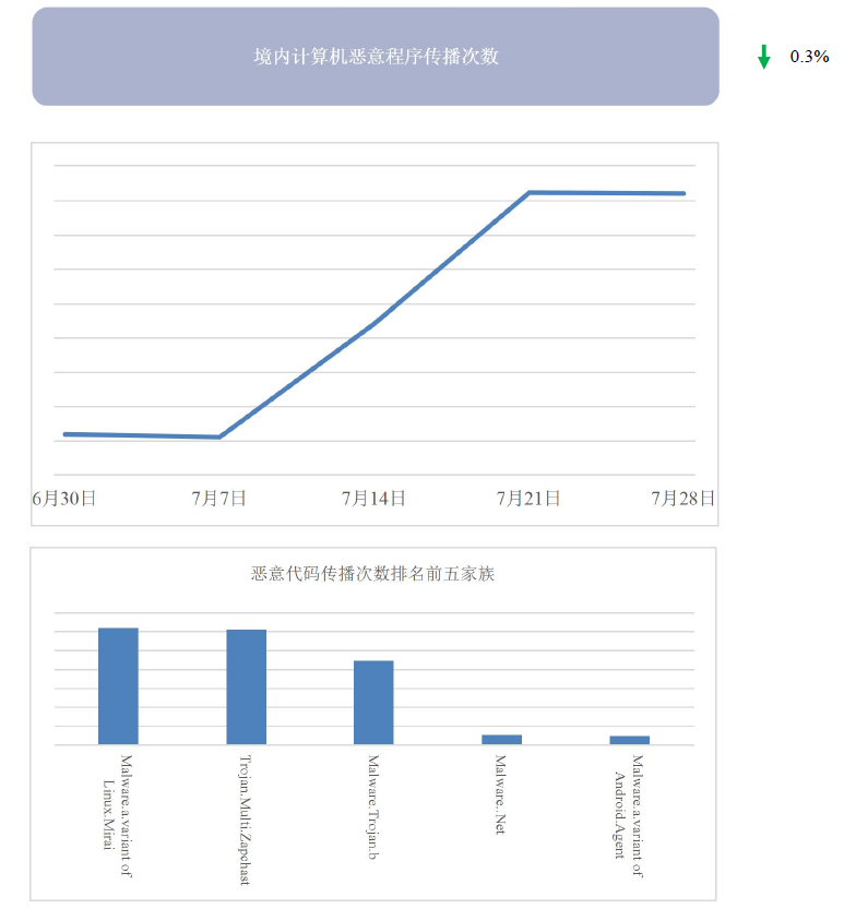 本周,互联网网络安全态势整体评价为良。我国互联网基础设施运行整体平稳,全国范围或省级行政区域内未发生造成重大影响的基础设施运行安全事件。针对政府、企业以及广大互联网用户的主要安全威胁来自于软件高危漏洞、恶意代码传播以及网站攻击。