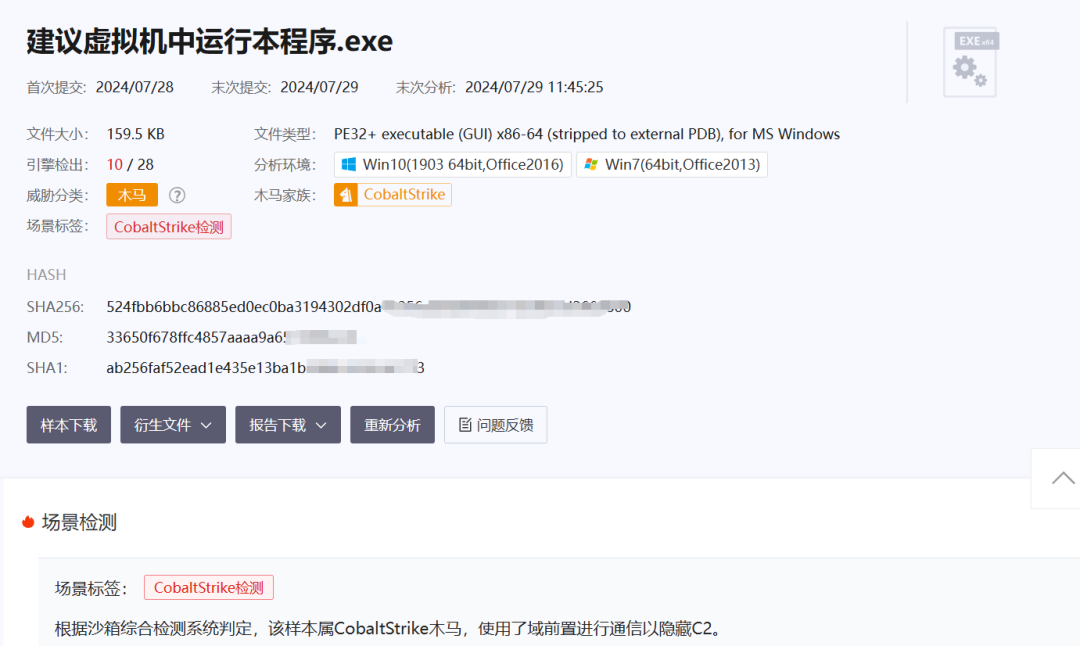 来看看OneSEC的EDR是怎么解这个问题的,以某域前置木马样本为例。