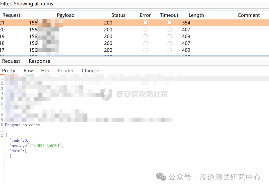 不停点击repeter或者放到intruder里面,就可以实现一个手机号接收到多条短信