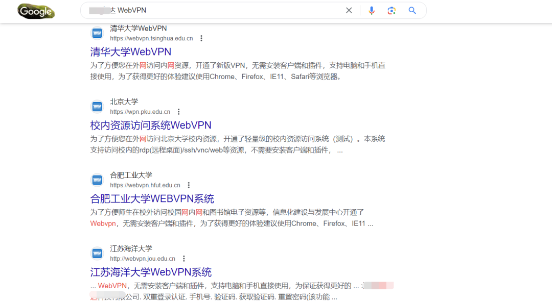 其中也可以使用Google浏览器进行信息收集,也是会发现一些不一样的收获的,我们可以看到下面的检索内容,就可以很明显的看到这几个学校使用的系统就是我们的目标开发商的系统