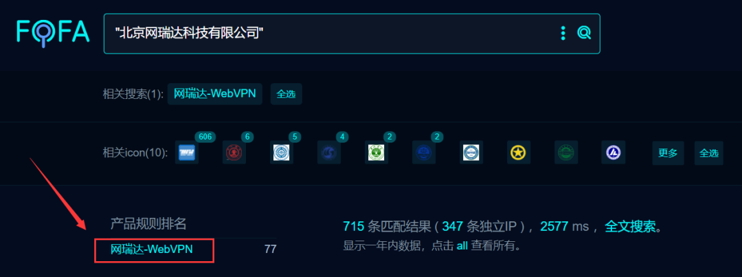 那么我们知道这些开发商后,我们只需要把这些开发商是产品进行收集,然后一些空间安全引擎比如使用FOFA、鹰图等进行产品查找不就可以达到系统通杀的效果呢?