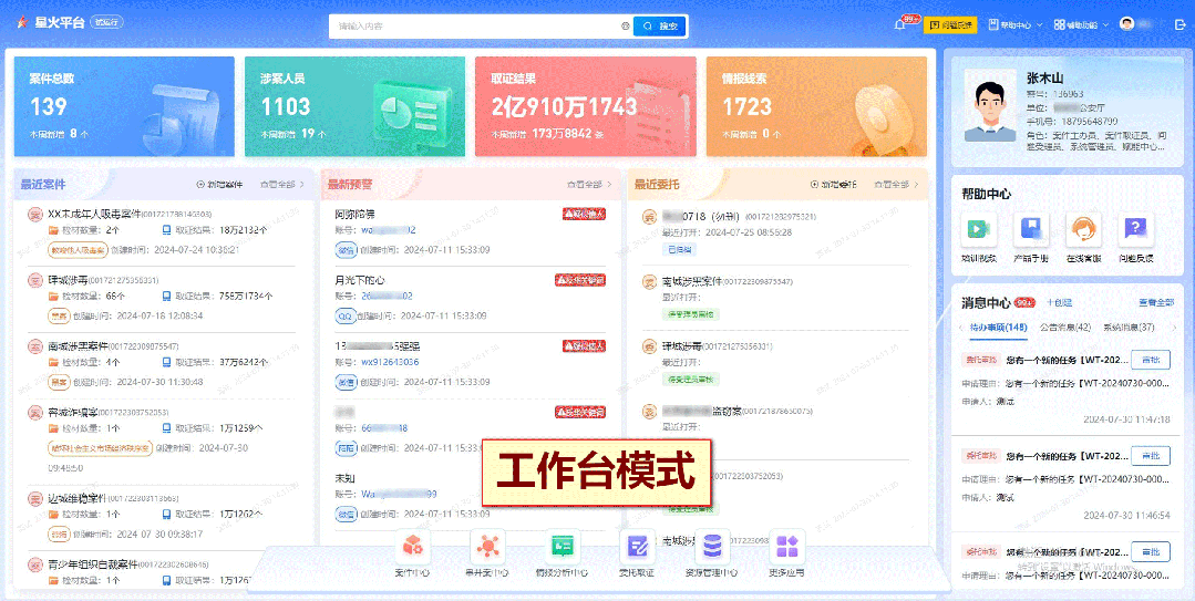 业内首款集单案深度研判、类案串并分析、实战模型构建、情报线索推送、业务流程管理、培训考试比武等能力于一体的电子数据取证分析****平台装备****。