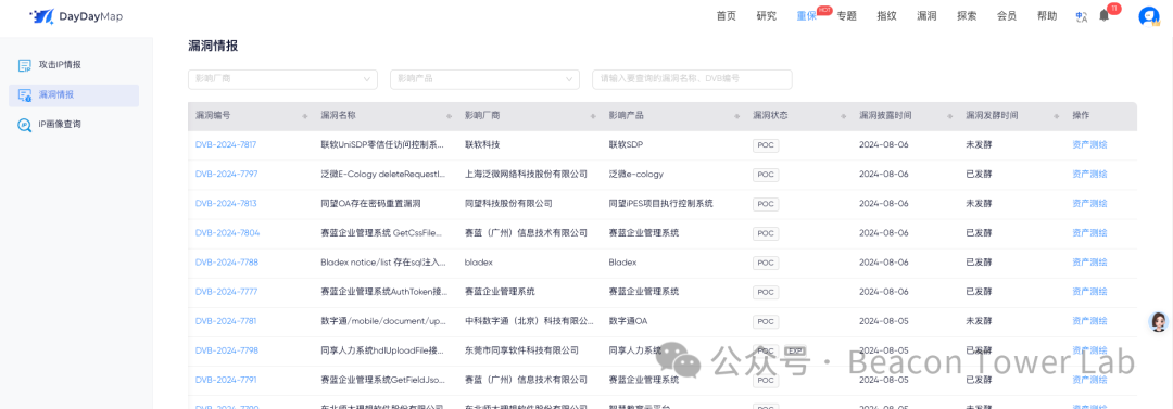 https://www.daydaymap.com/attack?type=vulIntelligence