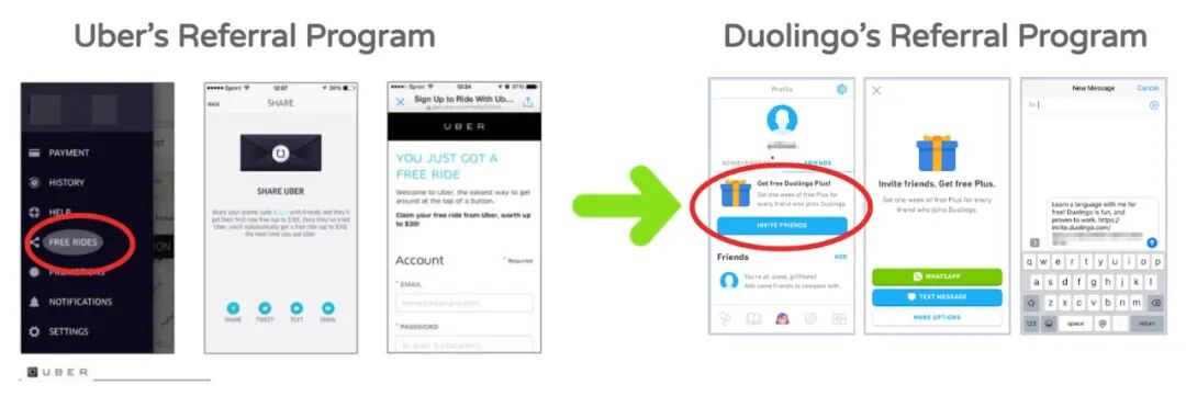 学习 Uber 的推荐计划——我们组建了一个新的产品团队,专注于获取新用户,称为获取团队,我们创建了一个类似于 Uber 的推荐计划。奖励是一个月的我们的高级订阅服务 Super Duolingo(当时称为 Duolingo Plus)。