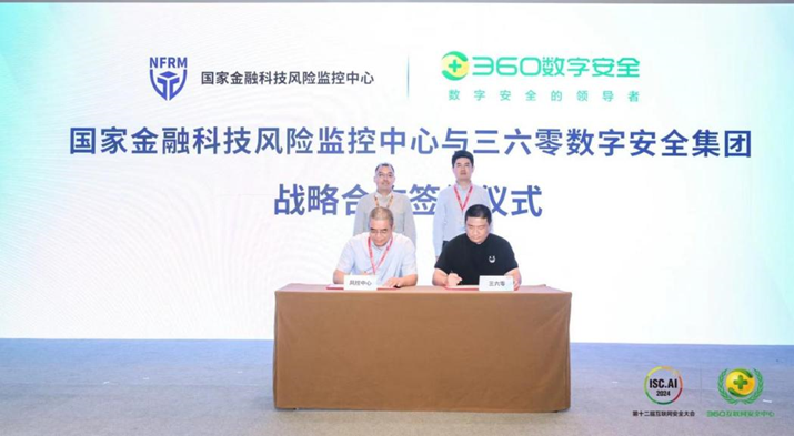 随后,国家金融科技风险监控中心(以下简称“风控中心”)与360数字安全集团签署了战略合作协议,双方将通过技术共研、场景共建,在金融科技风险防控领域展开深入合作,共同护航金融科技安全发展。在风控中心负责人邹世斌与360数字安全集团总裁胡振泉共同见证下,风控中心总经理范贵甫、360数字安全集团副总裁周猛代表双方在战略合作协议上签字。