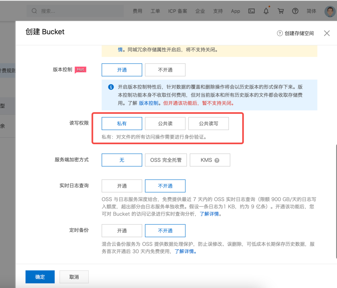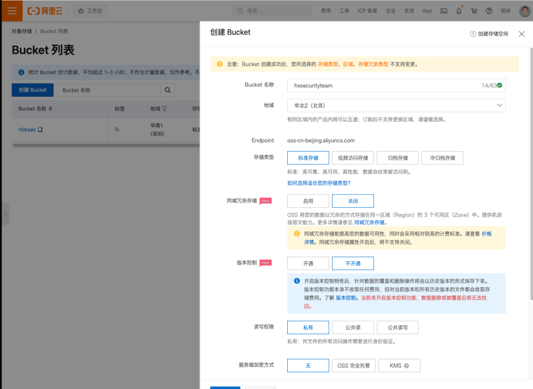 在创建Bucket桶时,默认是private的权限,如果在错误的配置下,给了listobject权限,就会导致可遍历存储桶。