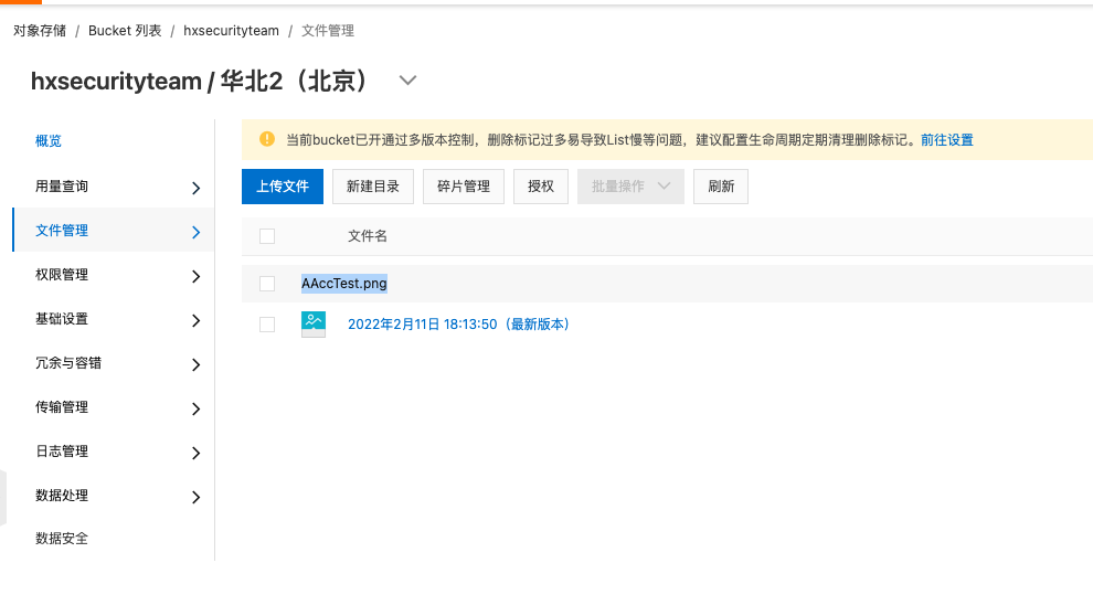 已经成功接管了该存储桶,尝试上传文件后配置权限公开访问。