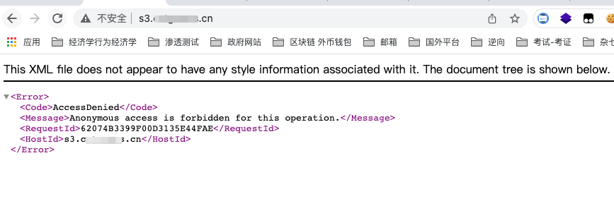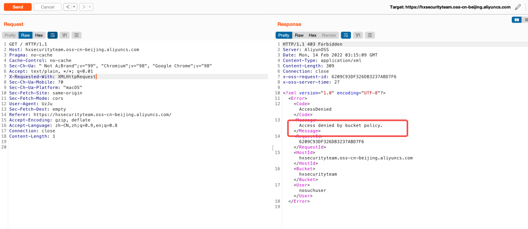当我们访问存储桶的时候,会提示我们已经被policy拦截。