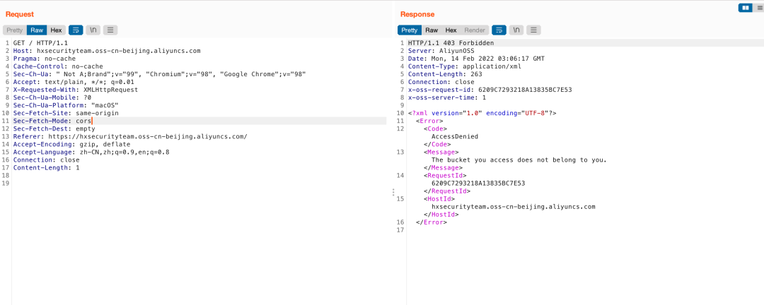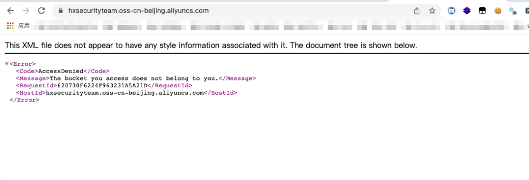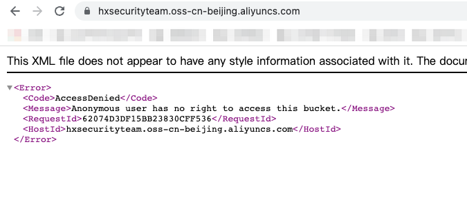 在阿里云下,当 Bucket 显示 NoSuchBucket 说明是可以接管的,如果显示 AccessDenied 则不行。