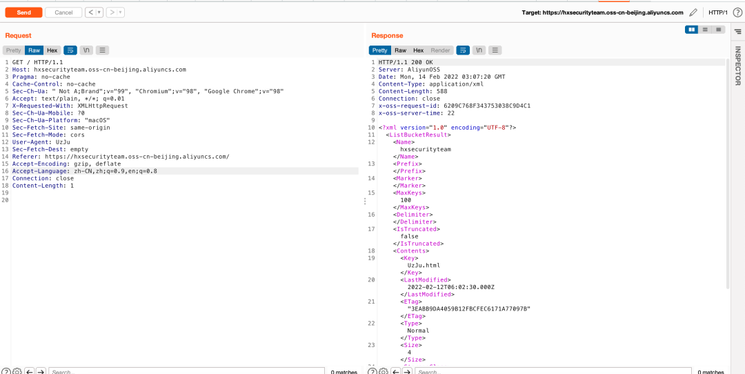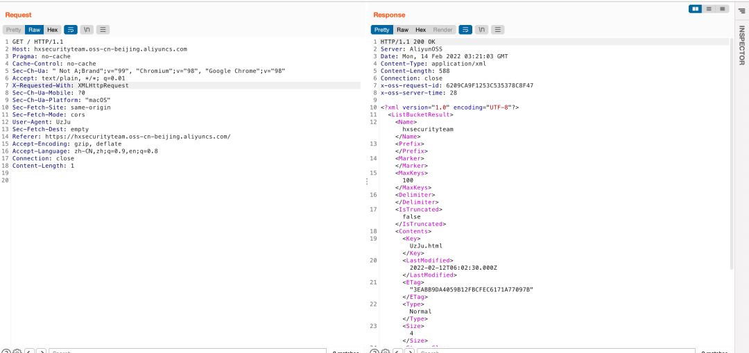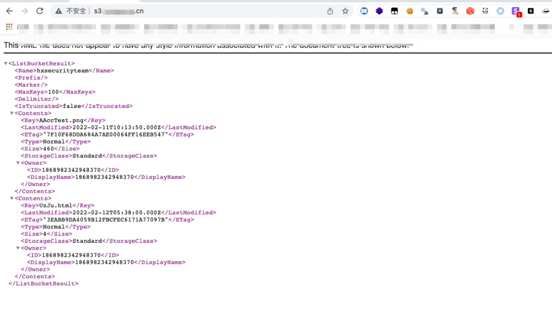 这样通过返回内容的不同,就可以进行 Bucket 名称爆破了,知道 Bucket 名称后,Key 的爆破也就很容易了。