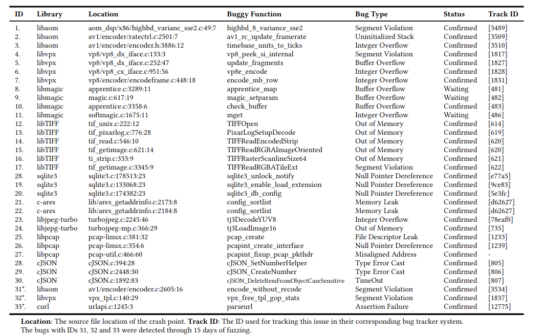 论文实现了PromptFuzz,并在14个真实世界的库上进行了评估。与OSS Fuzz和Hopper(最先进的模糊驱动生成工具)相比,PromptFuzz生成的模糊驱动程序的分支覆盖率分别是OSS Fuzz和Hopper的1.61,1.63倍。此外,PromptFuzz生成的模糊驱动程序在总共49次崩溃中检测到33个新漏洞,其中30个漏洞已由各自的社区确认。
