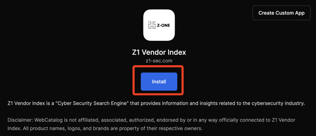 安装后,打开应用,搜索「Z1 Vendor Index」或「Cyber Security Mew」,点击安装。