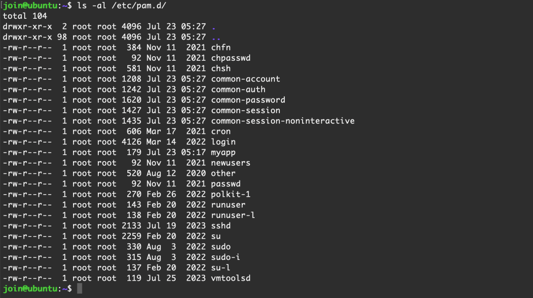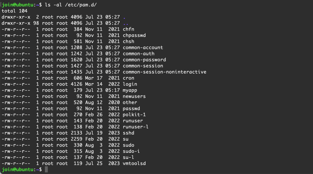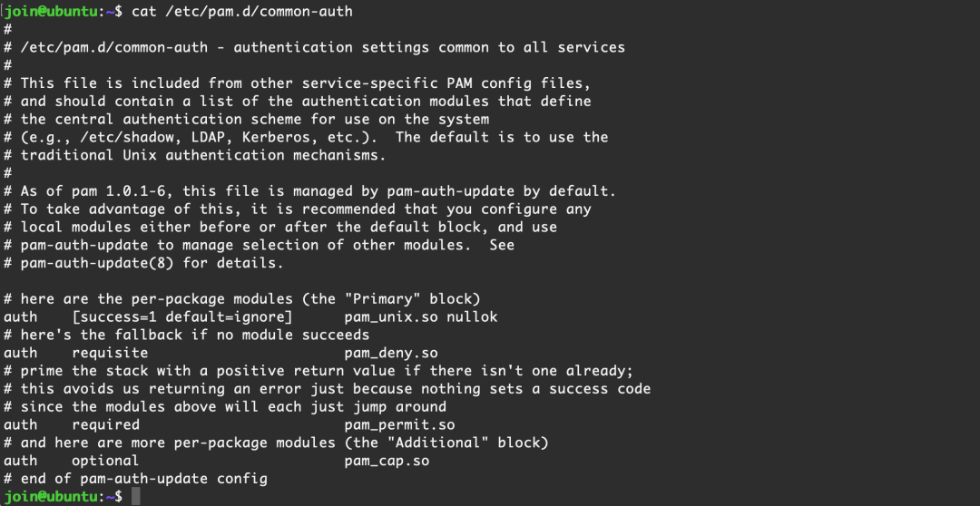 如果我们的应用程序使用了某种身份验证方式,就需要在配置文件中指定对应的模块,那到底有哪些模块呢?默认都是什么功能,接下来我们以 Ubuntu Server 22.04 默认的模块为例来一一介绍