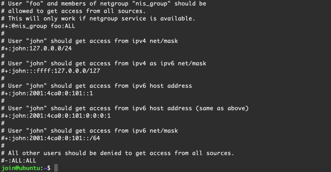 中进行配置。这个文件定义了可以或不可以访问的用户和主机